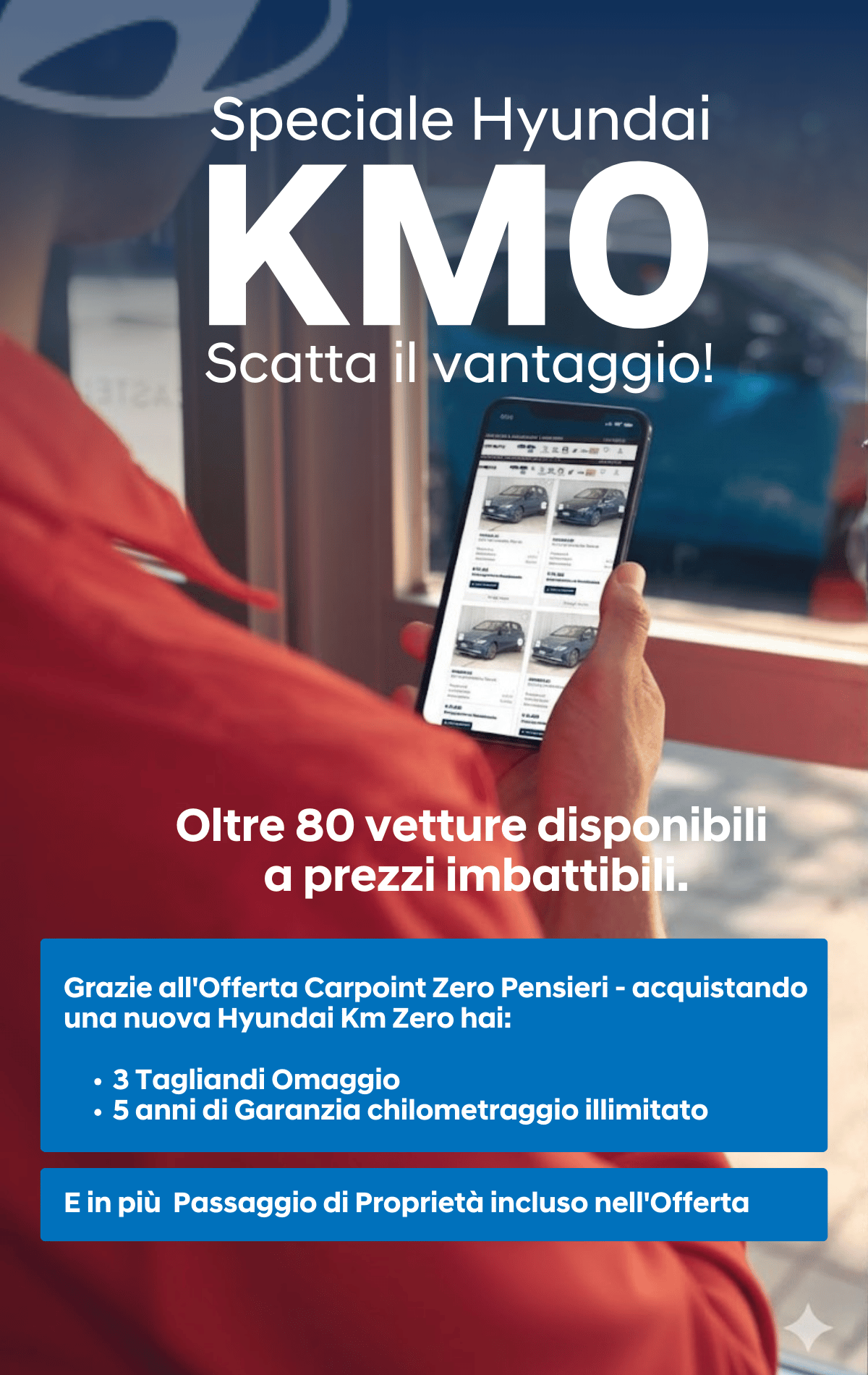 Da Carpoint trovi oltre 80 Hyundai Km Zero a prezzi imbattibili e consegna immediata. Dalle citycar più agili alle SUV più spaziose.