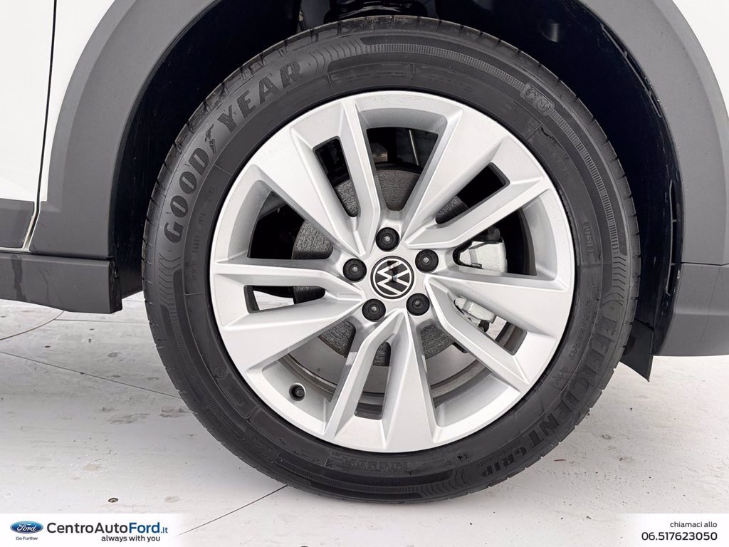 Adaptive Cruise Control - ACC Cerchi in lega Bangalore 6,5 J x 17 e pneumatici 205/55 R17 a bassa Chiusura centralizzata Keyless-Entry senza dispositivo di sicurezza Safe Cristalli posteriori e lunotto oscurati Edition Plus Equipaggiamento Italia Light & Vision Pack Plus Mancorrenti neri Park Pilot - Sensori di parcheggio anteriori e posteriori Radio Ready 2 Discover Ready for We Connect e We Connect Plus o VW Connect e VW Connect Plus Ruota di scorta in acciaio di dimensioni ridotte da 15 Supplemento colore speciale e/o metallizzato Videocamera per retromarcia Rear view Volkswagen Extra Time 2 anni fino a 80.000 km