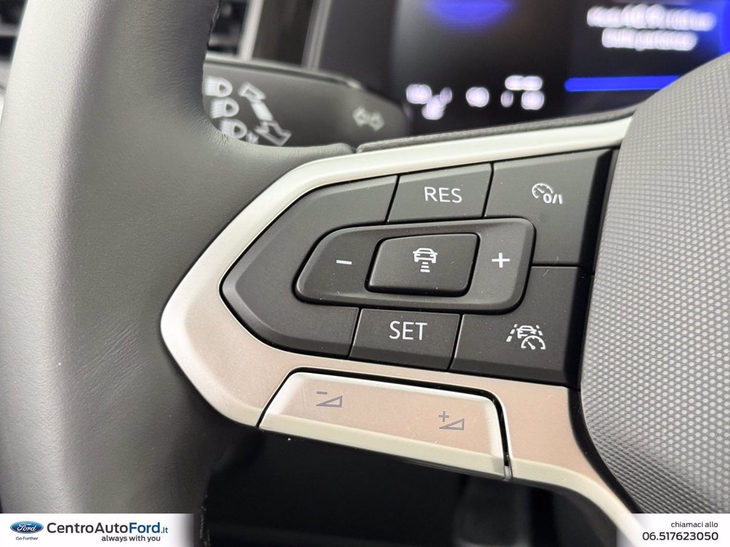 Adaptive Cruise Control - ACC Cerchi in lega Bangalore 6,5 J x 17 e pneumatici 205/55 R17 a bassa Chiusura centralizzata Keyless-Entry senza dispositivo di sicurezza Safe Cristalli posteriori e lunotto oscurati Edition Plus Equipaggiamento Italia Light & Vision Pack Plus Mancorrenti neri Park Pilot - Sensori di parcheggio anteriori e posteriori Radio Ready 2 Discover Ready for We Connect e We Connect Plus o VW Connect e VW Connect Plus Ruota di scorta in acciaio di dimensioni ridotte da 15 Supplemento colore speciale e/o metallizzato Videocamera per retromarcia Rear view Volkswagen Extra Time 2 anni fino a 80.000 km