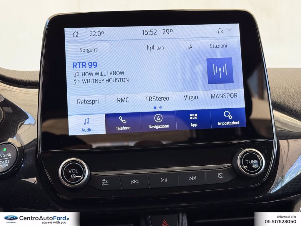 - SYNC 3 radio con schermo Touchscreen TFT 8, Navigation System, Bluetooth, funzione mirroring Apple CarPlay, Android Auto, radio 6 altoparlanti con DAB
