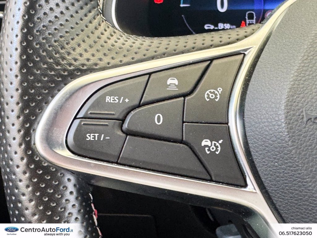 - Volante in pelle traforato con cuciture e badge Renault Sport